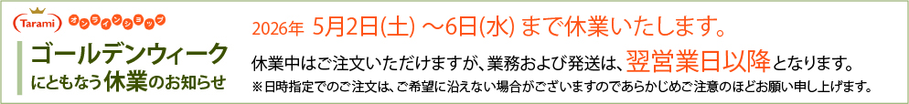 ・通常5営業日以内の出荷を心掛けておりますが、出荷状況・交通状況や天候等の影響で、出荷が遅れる場合があります。予めご了承ください。