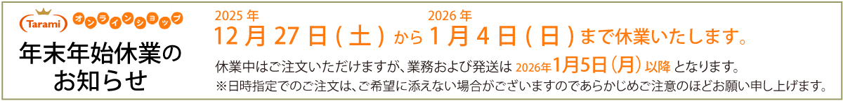・通常5営業日以内の出荷を心掛けておりますが、出荷状況・交通状況や天候等の影響で、出荷が遅れる場合があります。予めご了承ください。